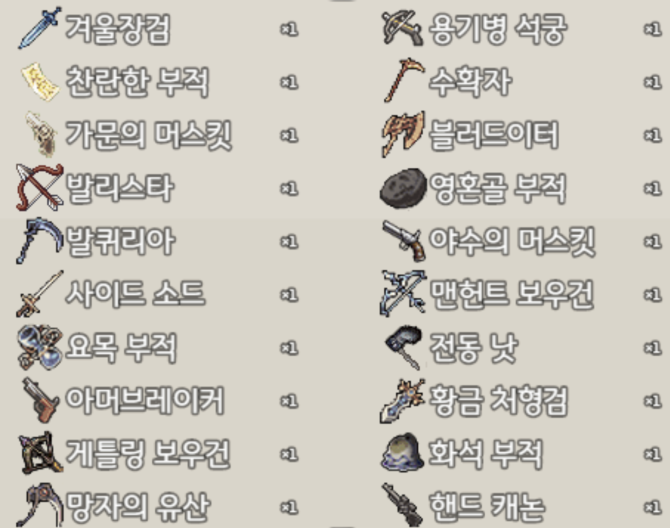 괜히 종류 모은다고 저렙~고렙 무기들까지 1개씩 다 강화를...