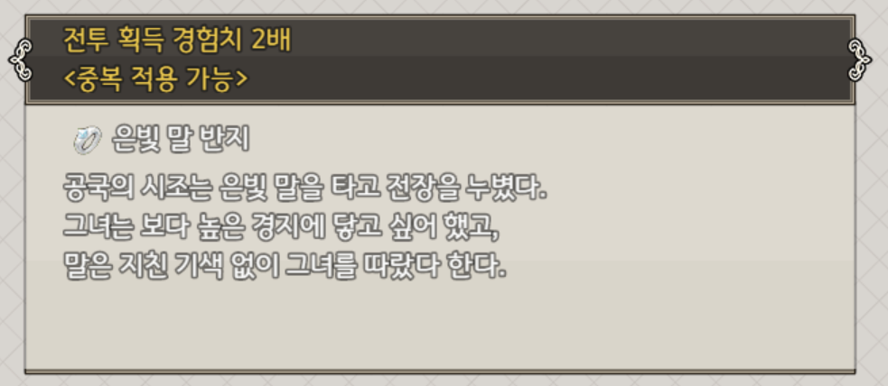 은빛반지와 달리 이건 전투종료 후에 2배 적용된 수치로 표시되더라고요
