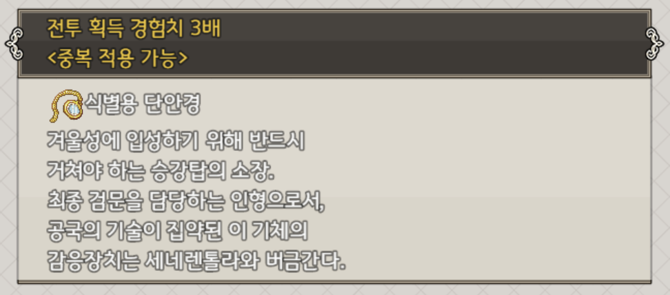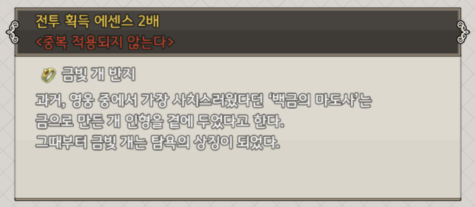 이건 중복으로 적용돼서 주인공에게 2개다 착용하면 4배가 돼요