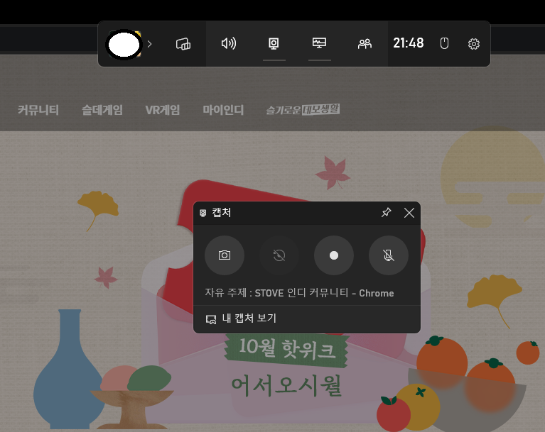 1. 윈도우 키 + G 또는 "xbox game bar"를 검색해서 실행하면
