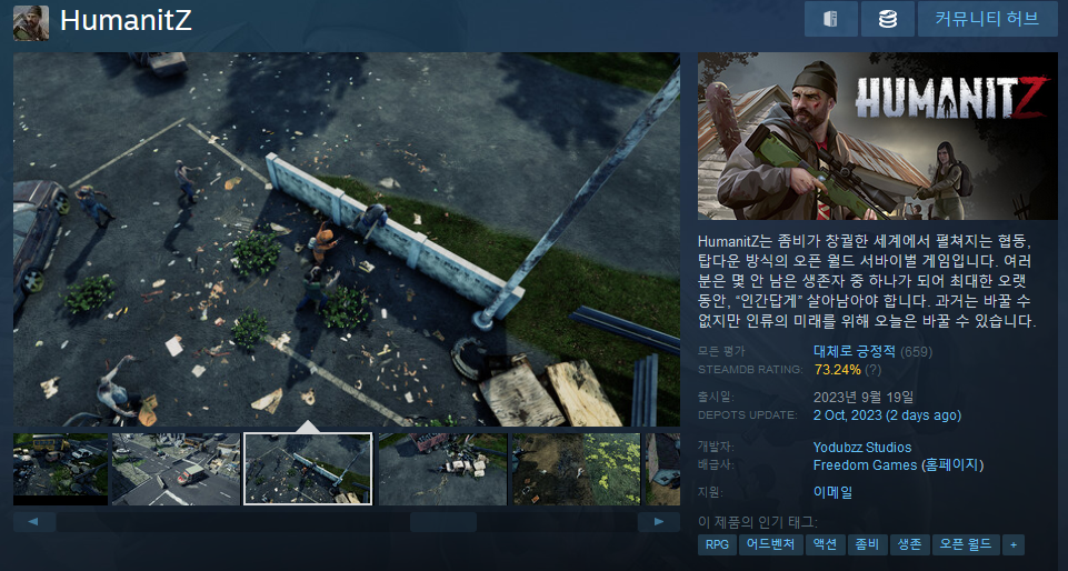 스토브 인디에 게임을 입점한 프리덤 게임즈에서 유통하고 있는 게임입니다. 프로젝트 좀보이드류 게임 중 나름 괜찮은 평가를 받고 있습니다. 좀보이드가 무겁고 어렵다면 휴머니트Z는 그보다는 가벼워 좀 더 게임답게 즐길 수 있다고 합니다. 아직 얼리엑세스라 버그 수정 및 컨텐츠 추가가 필요합니다.