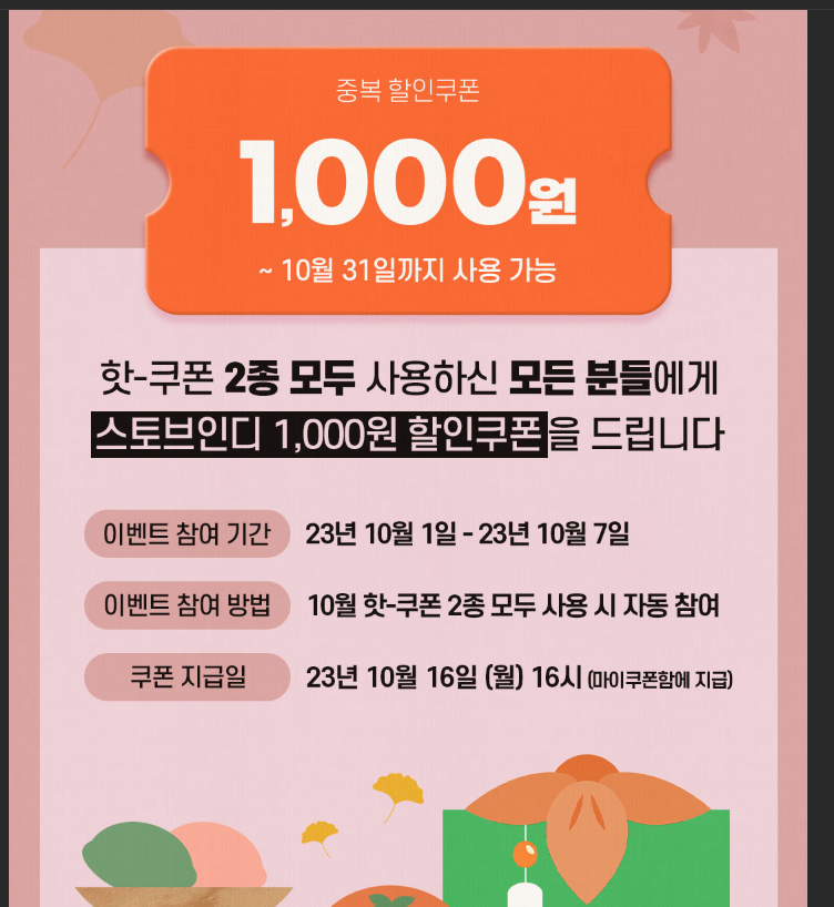 참고로 1000원 쿠폰은 16일 16시에 지급되고, 중복할인 가능하며, 10월 31일까지 사용 이라고 적혀있네요.