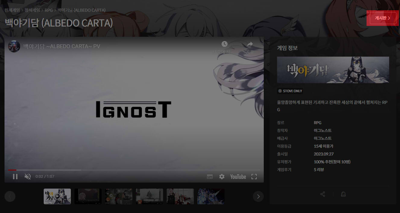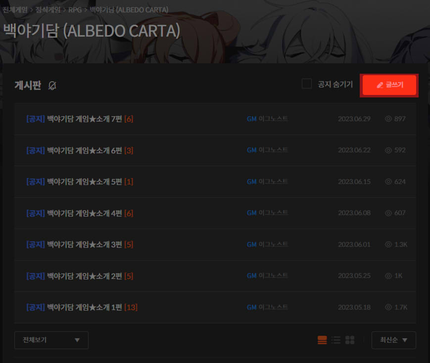 1. 스토브 인디에 접속하셔서 《백야기담》 혹은 《백야기담 시크릿 플러스》 게시판에 방문해 주세요!