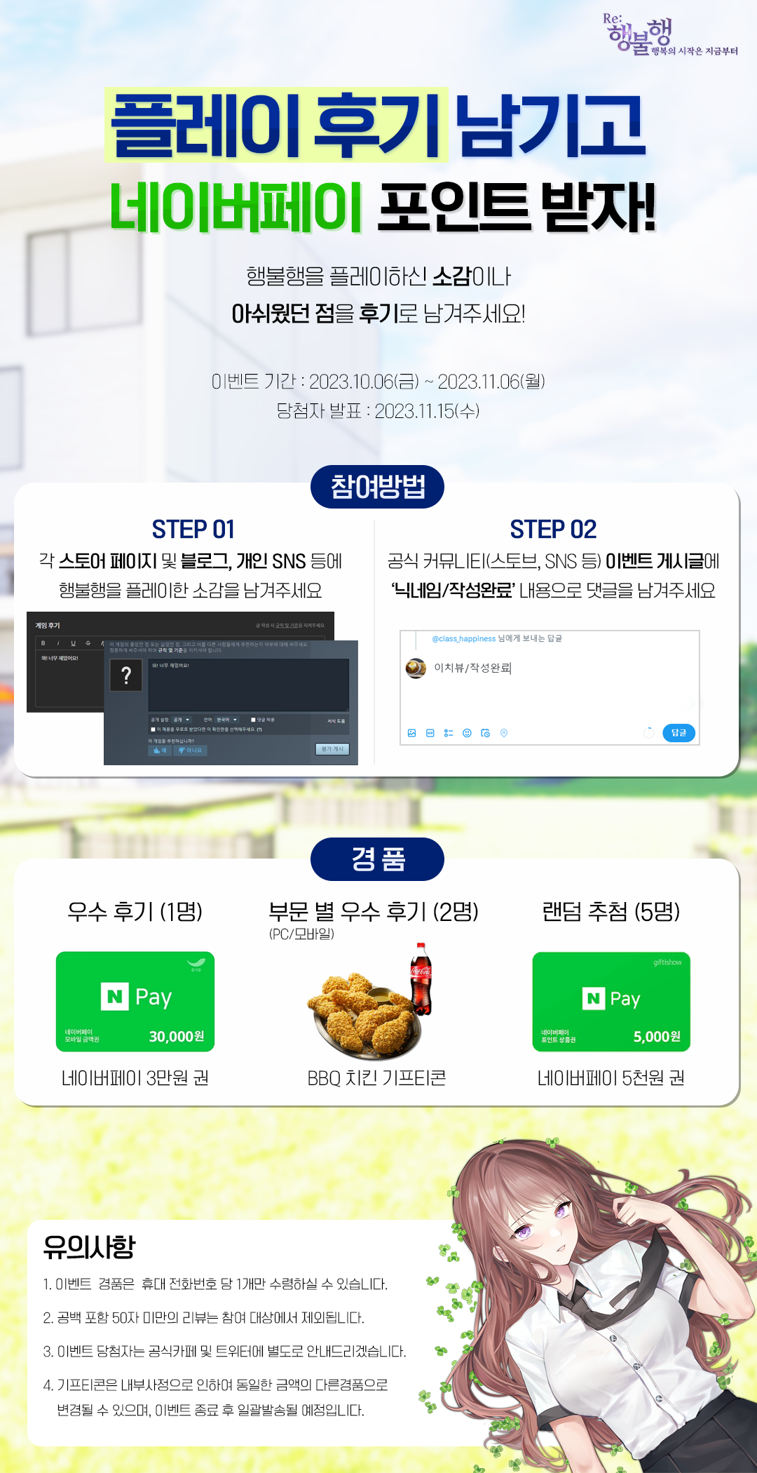 해당 게시글, 혹은 공식 카페 게시글 댓글에