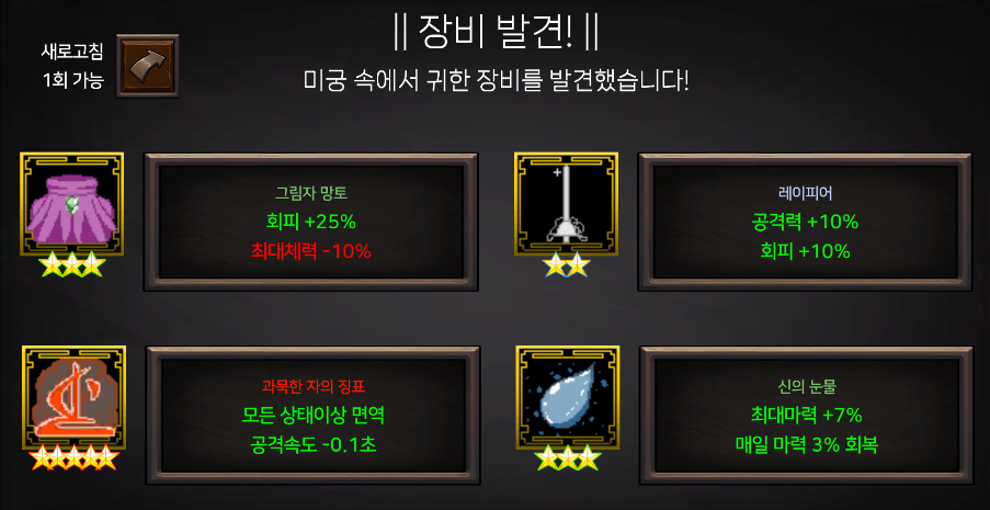 효과가 다양해지고 패널티가 심한 장비들도 존재하기 시작합니다.