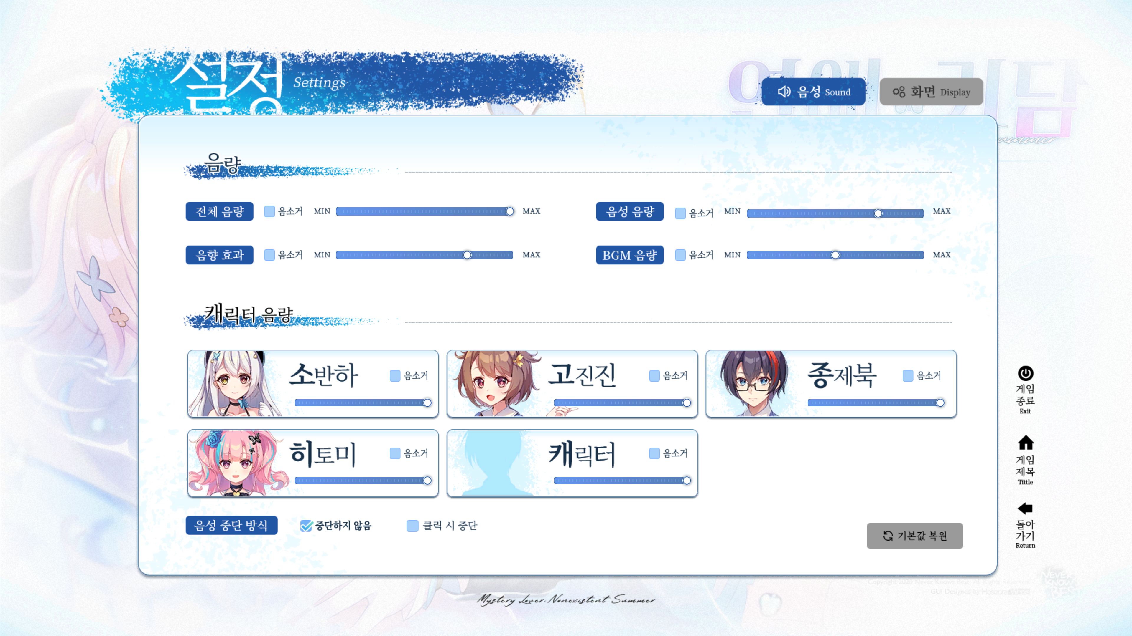 고진진만 음소거 해도 고진진 소리가 나오고, 캐릭터를 음소서 애야 고진진이 음소거가 되네요.
