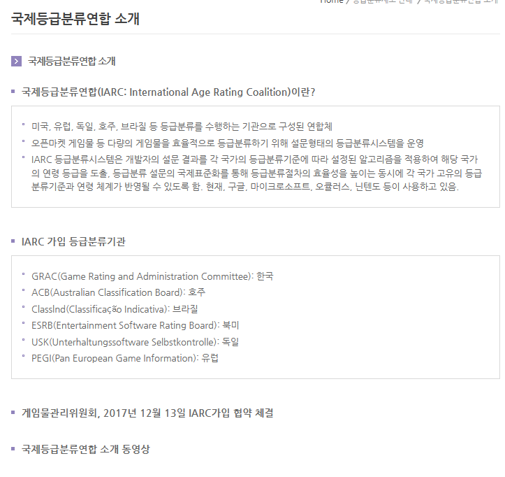 그래서 스팀도 이걸 받으면 자체 등급 분류를 할수 있고 그리고 국제 등급 분류 연합의 통합 심의를 받으면 위 협약에 가입된 국가간에는 연계도 되서 지역락을 걸 필요도 없습니다.
