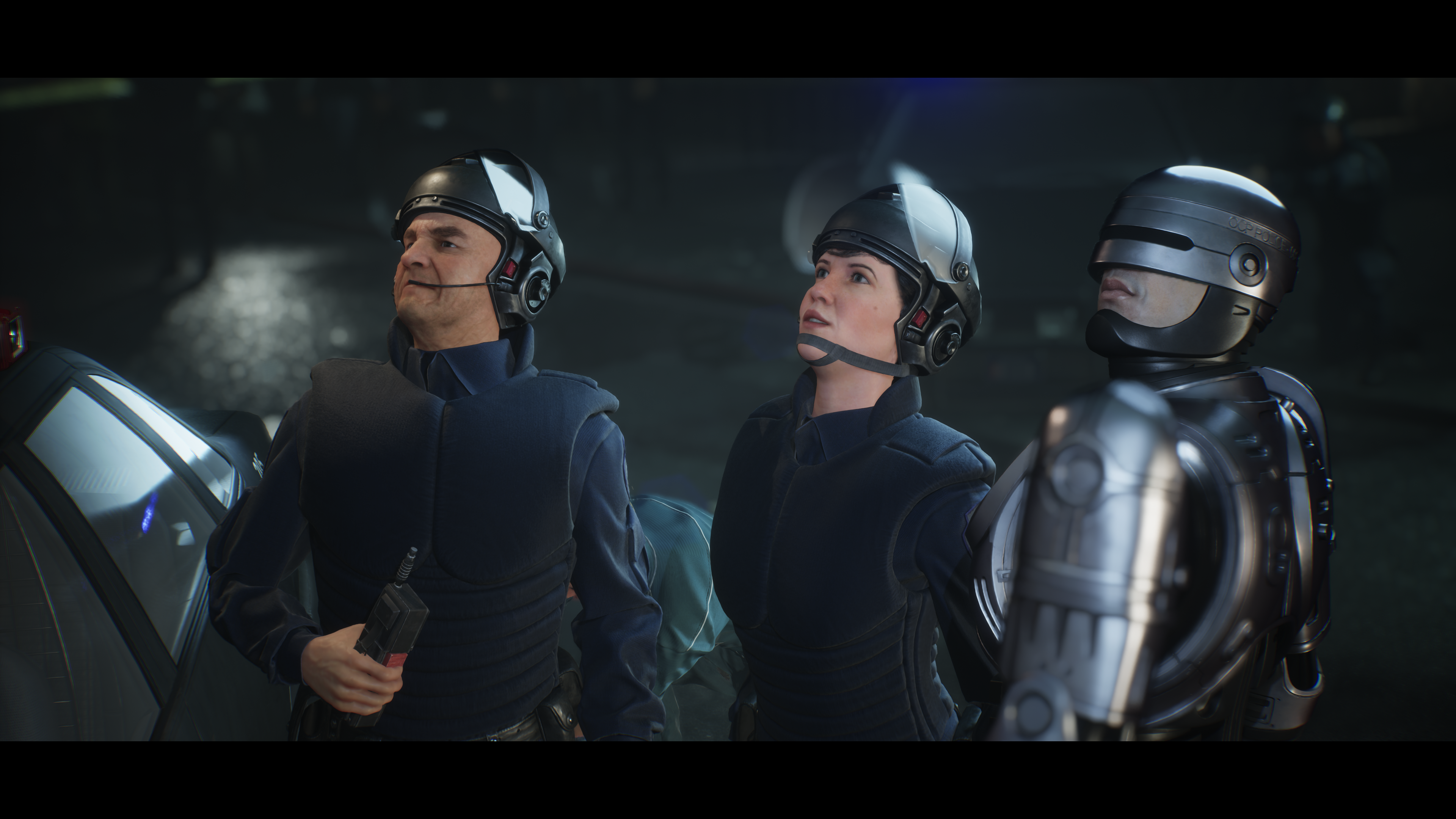 흠... 뭔가... 영화 로봇캅2 와 3 사이 스토리라고 하더니. 정말 그 당시 비디오에서 나올 법한 화면인거 같은데.