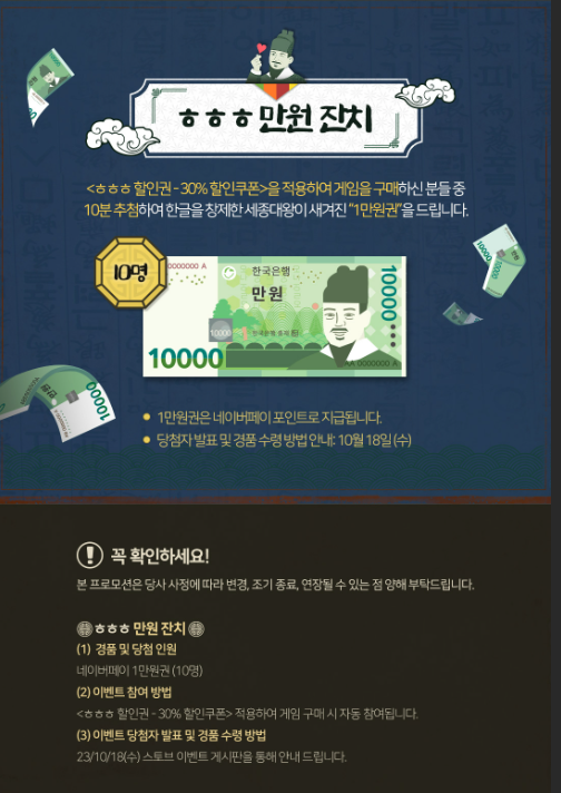 30% 쿠폰 사용자 중 추첨해서 만원 네이버 포인트 지급됩니다.