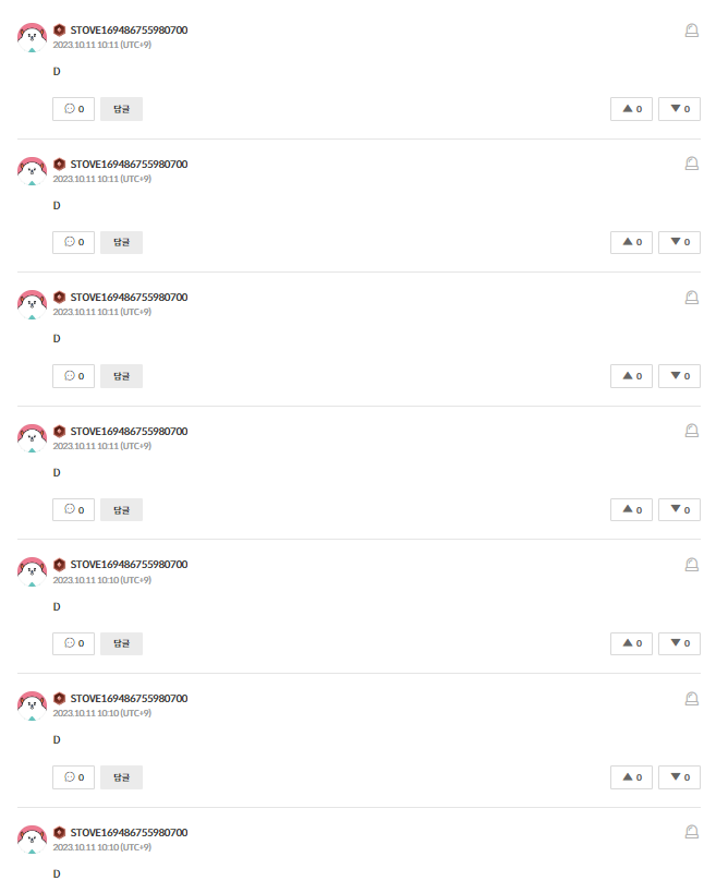 해당 유저에게는 별도 무의미한 댓글 반복 작성 자제를 안내 드렸습니다. 현재 작성한 댓글은 모두 작성하신 분께서 삭제한 것으로 확인됩니다.