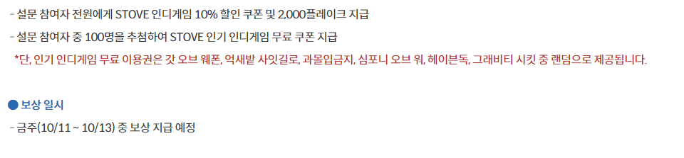 [발표] 10/11(수) STOVE 커뮤니티 만족도 설문조사 경품 지급 및 당첨자 발표