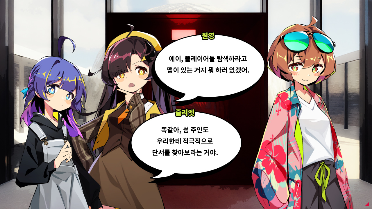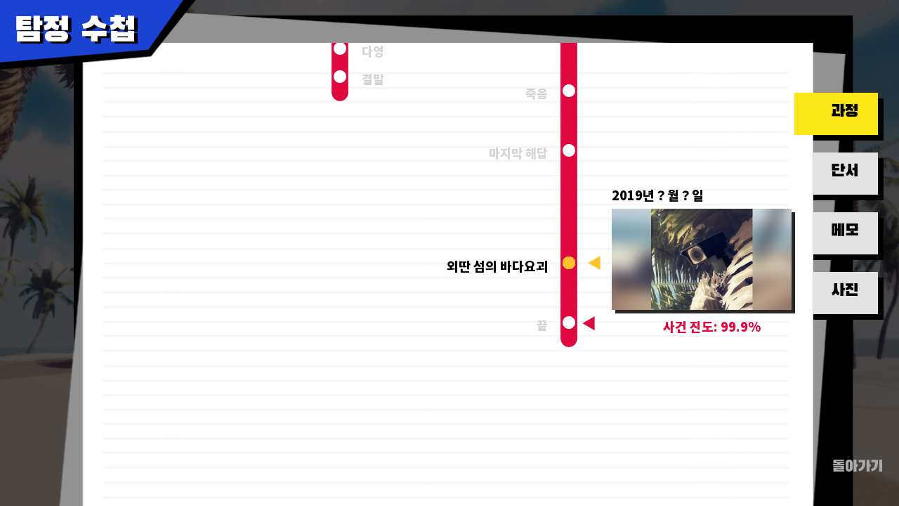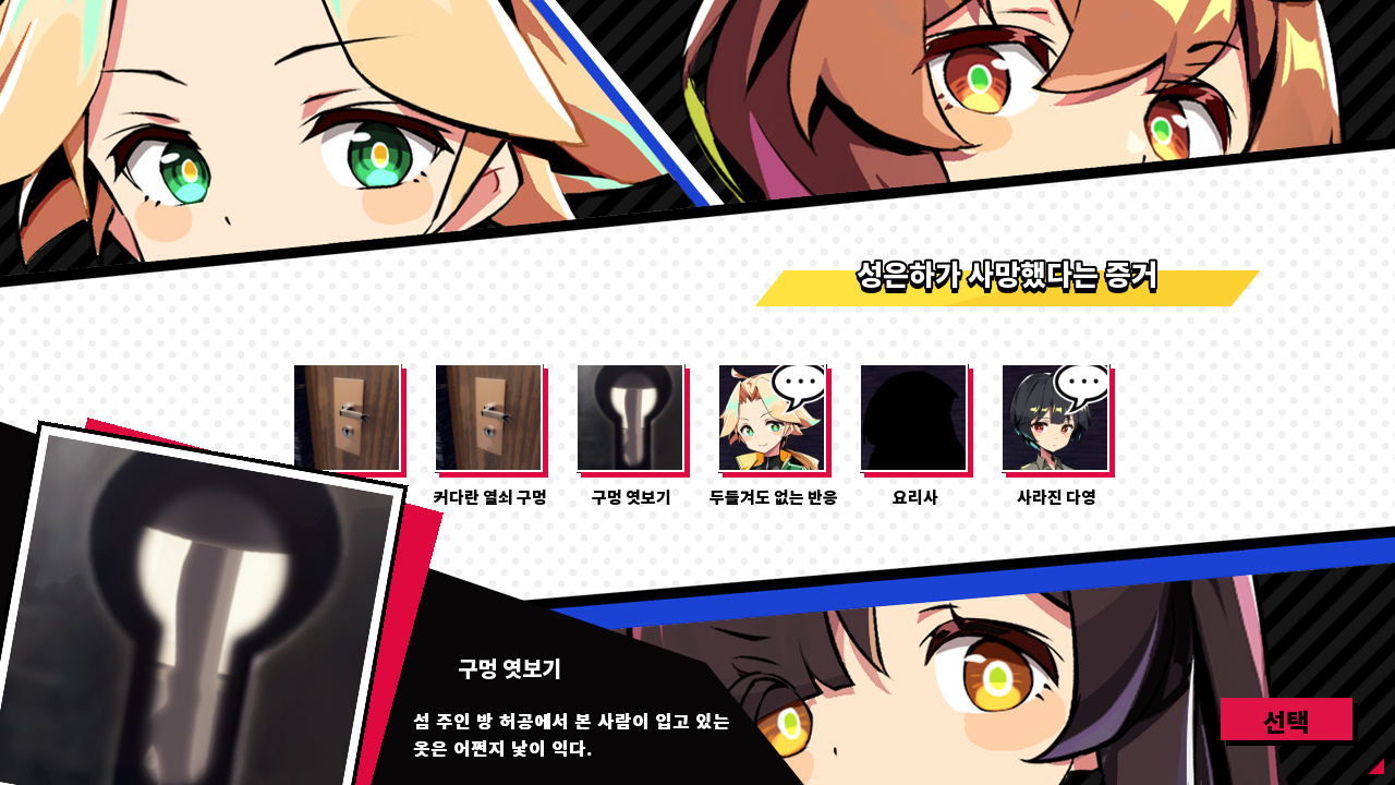 추리나 퍼즐 요소가 일부 있되 기본적으로 각 등장인물들이 각자 자기 생각에 따라 추리하는 것을 유저가 읽어 나가는 스타일입니다