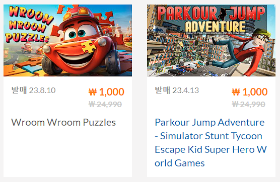저기 1000원에 팔고 있는 퍼즐 게임도, 누가 봐도 명백히 저작권 위반 게임으로 생각되는데, 당당히 등록되어 있어서 마음 한편이 매우 찝찝했거든요.