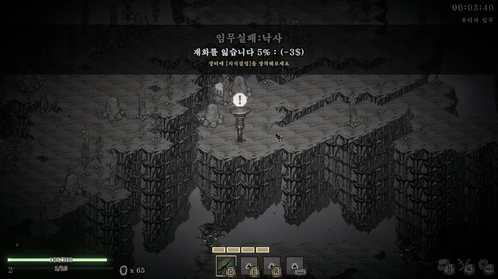 한 번 떨어질 때마다 거기에서 끄고싶은 욕망이 샘솟는 게임이지만 동시에 한 번만 더 뚫어보겠다는 의지를 태울 수 있는 게임이기도 하고