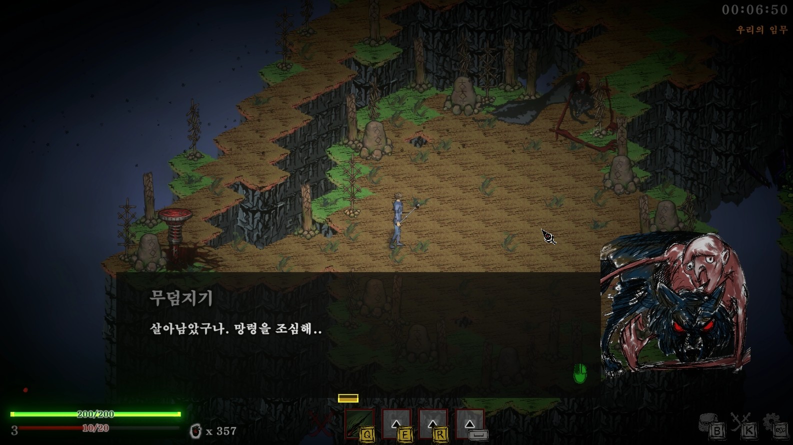 암흑물질: 낯선 배달원에서 유저들은 우주에서 온 정체불명의 물질로 인해 변해버린 지구를 탐험해야 한다는 짤막한 프롤로그 이후 왼팔을 잃어버린 주인공을 조작해 이야기를 전개해나가게 됩니다. 키보드와 마우스뿐만 아니라 패드로 즐기는 것도 가능하기 때문에 패드를 가지고 있다면 오히려 조금 더 좋은 컨트롤을 가져갈 수도 있어요
