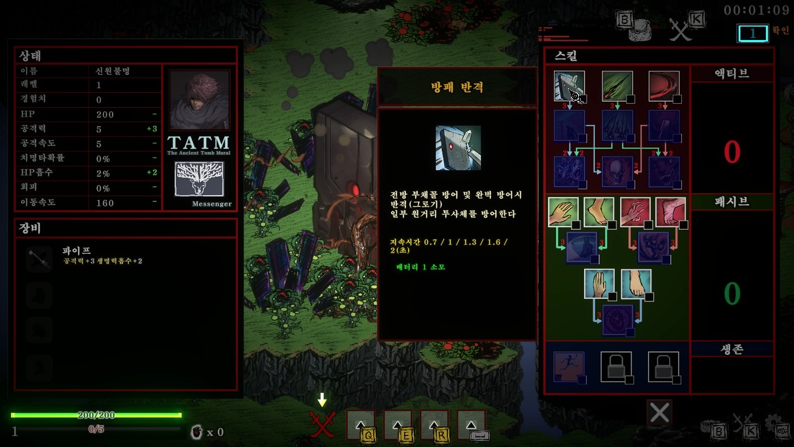 어느 정도 스킬을 활성화하고 나서부터는 스킬을 사용해 전투를 풀어나가게 되지만 암흑물질: 낯선 배달원에는 스킬 배터리라는 시스템이 존재, 적을 기본 공격으로 처치해 스킬 배터리를 충전해야 Q E R에 배치한 스킬들을 사용할 수 있어요. 각 스킬마다 요구하는 배터리량이 달라 어떻게 스킬을 분배할지 고민하는 것도 나름대로의 재미 중 하나입니다