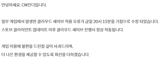 일부 게임 세이브 오류 수정업뎃이었네요