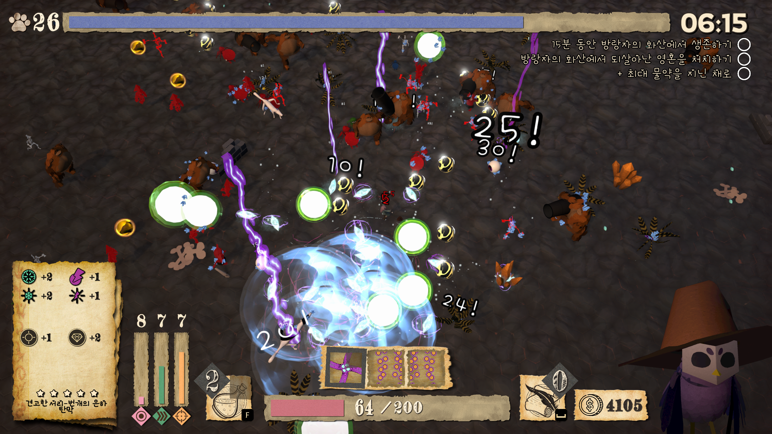 '난 (다른) 동물이 싫어!'는 아이템 획득이 재미있는 로그라이트 역탄막 뱀서류 게임입니다. 캐릭터, 무기, 특성 트리 사이에서 최고의 시너지 효과를 찾는 게임의 묘미를 느껴보세요!