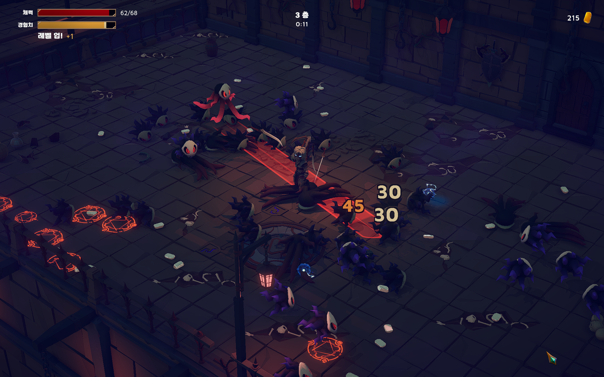일단 뱀서라이크가 익숙하지 않은 분들도 쉽게 즐길 수 있도록 쉬움 난이도를 제공, 이후 실력이 쌓이는 느낌이 들면 그 때부터 보통과 어려움을 선택하고 즐기는 게 가능해요