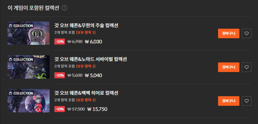 갓 오브 웨폰 하단에 보면 콜렉션이 있더군요.