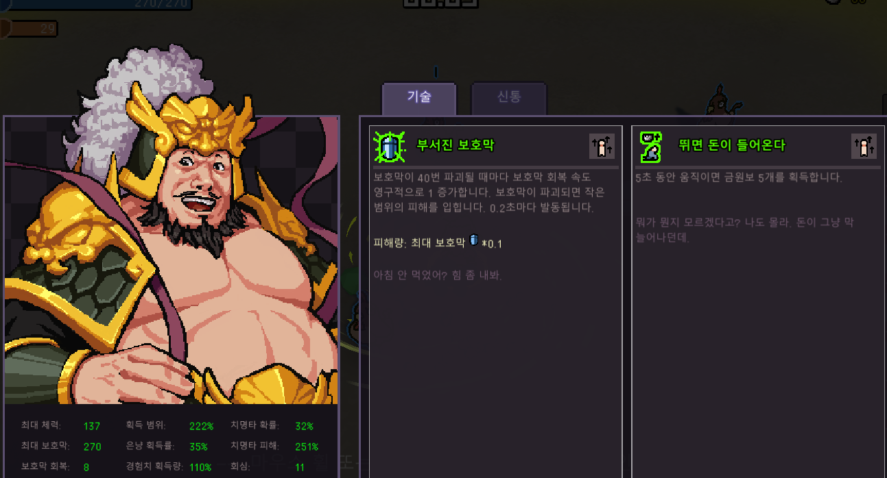 플레이 중에 자신의 기술과 신통을 볼 수 있는것처럼