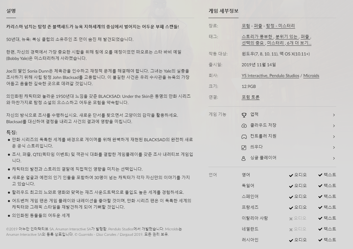 Blacksad: Under the Skin - 증기 기준 가격 20,400원