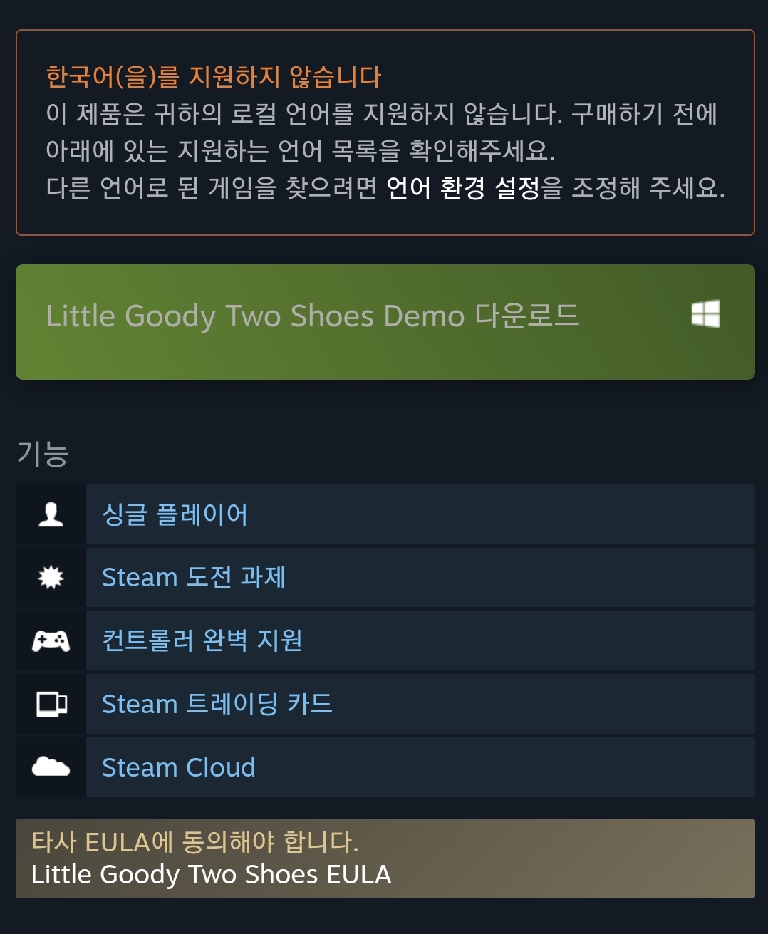 차라리 언어만 지원 안하면 기계 번역이나 유저 패치, 안되면 조금이라도 알아 들을 수 있는 언어로라도 플레이 할텐데 ㅠㅠ