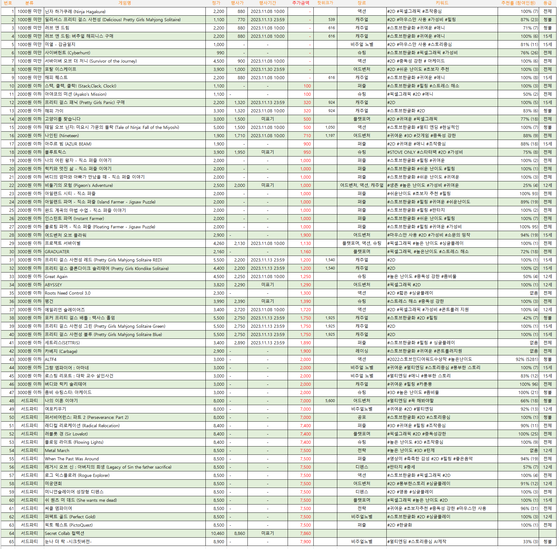 리스트는 3000원 미만, 8000~9000 사이의 게임 리스트를 정리했습니다.