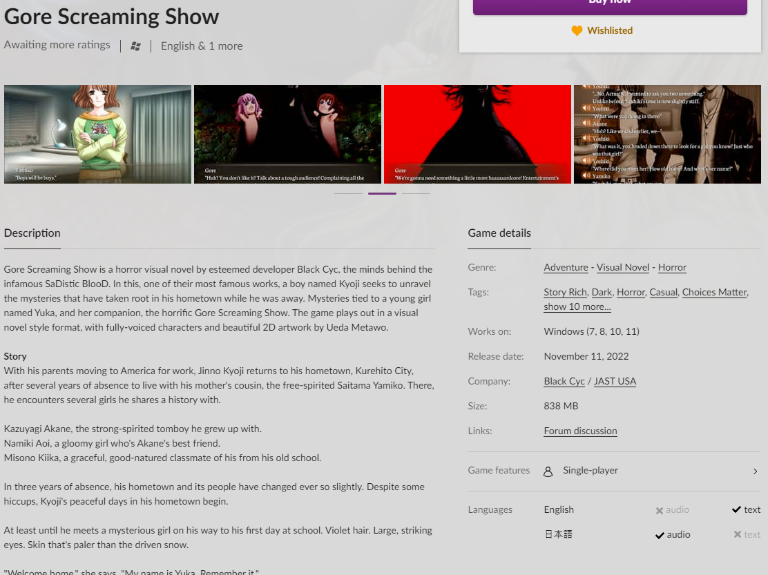 다른 플랫폼에서는 일본어 원문없이 영어 또는 중국어 텍스트로만 해야 하는데, 번역상태도 좋지 않다는 소리가 있는 것 같습니다.
