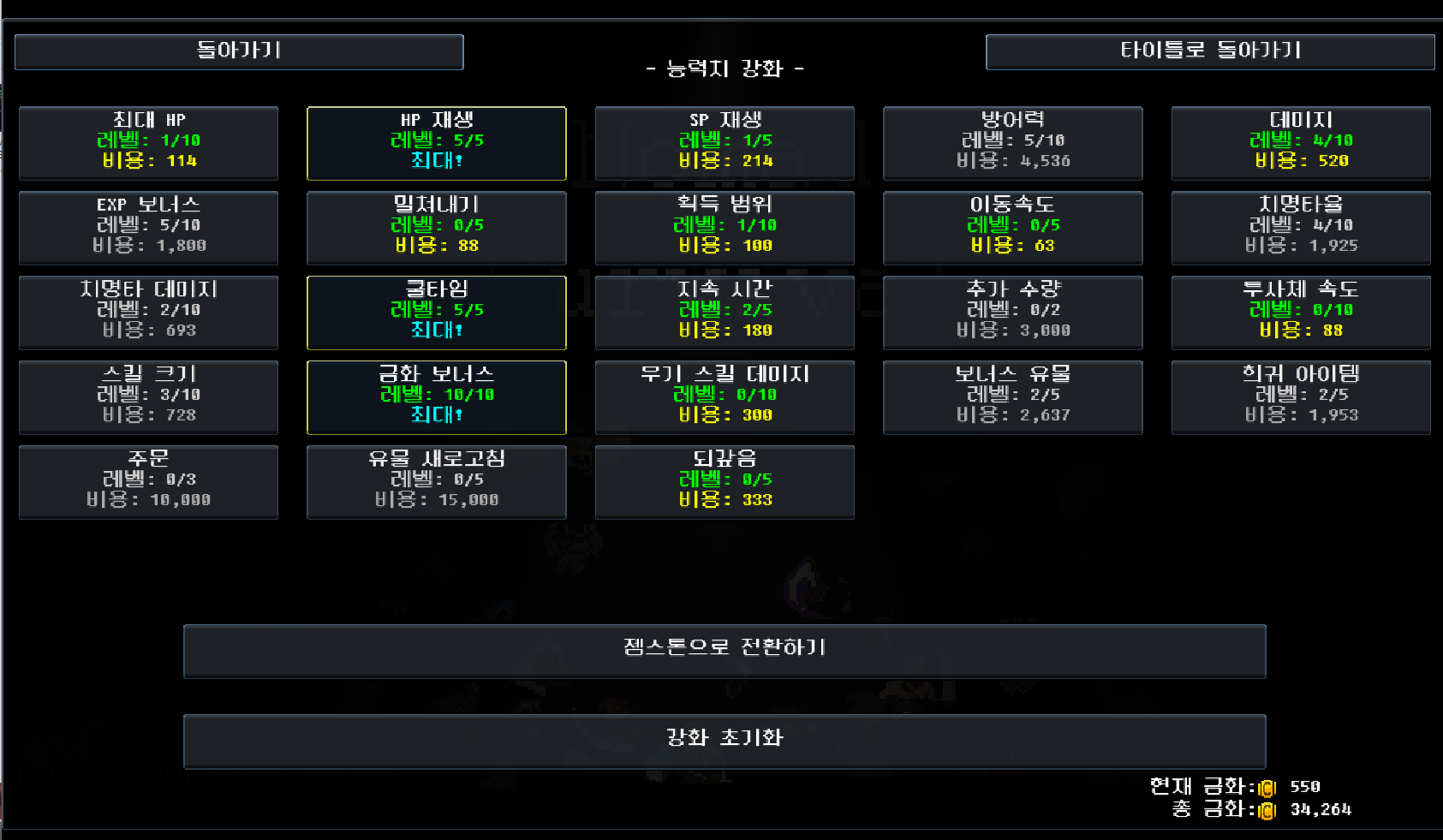 게임을 진행하면서 얻은 금화로 반드시 강화를 합시다.
