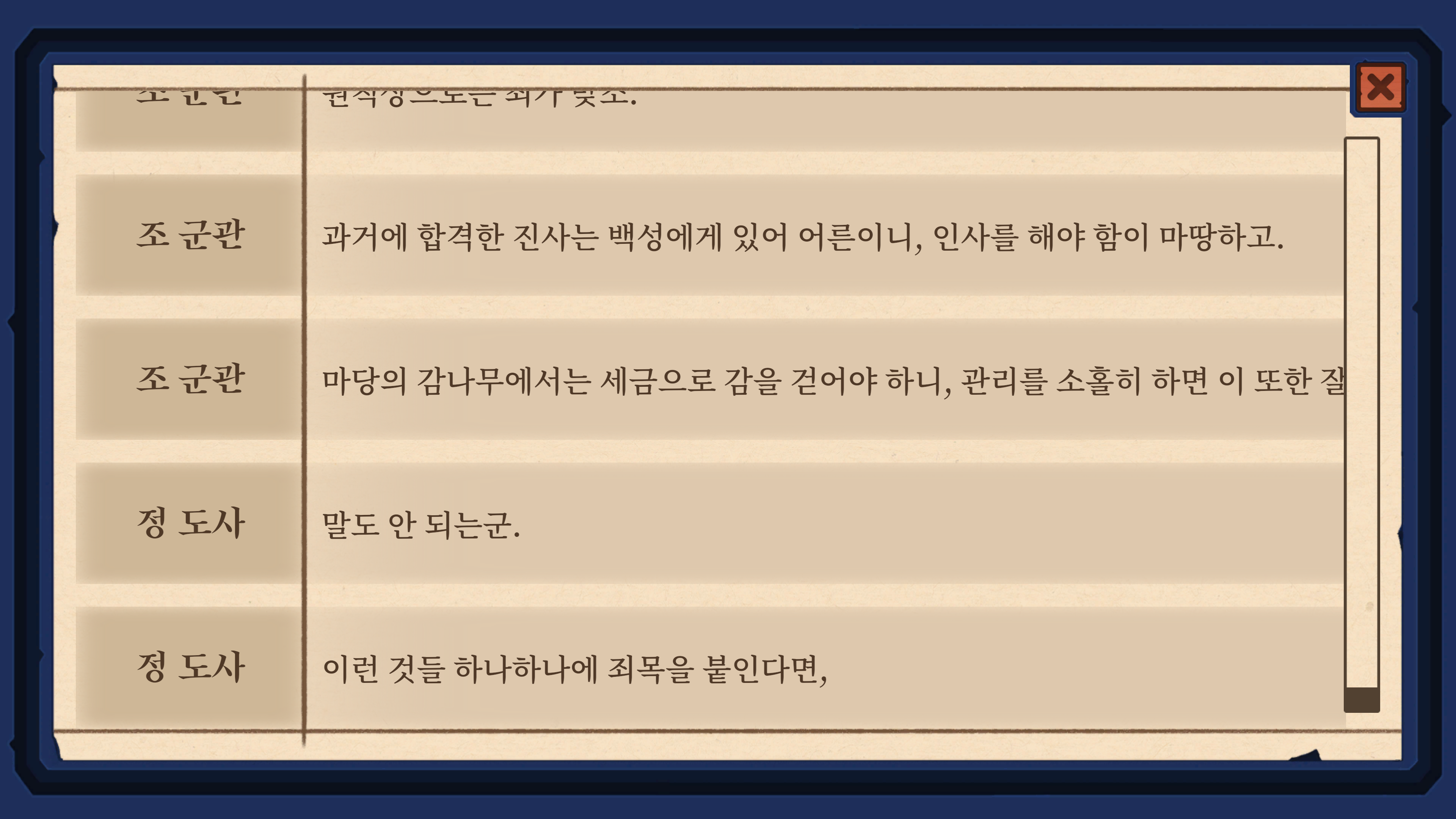 - 감탄사 정도만 나오는데, 정 도사 한 캐릭터에 한해서는 어느 정도 몇 개의 대사 정도가 추가되었으면 합니다.