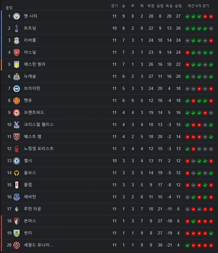 첼시한테 이기면 1등, 비기거나 지면 2등! 첼시 반으로 꺾는 날 됐으면 좋겠네요! 굿나잇