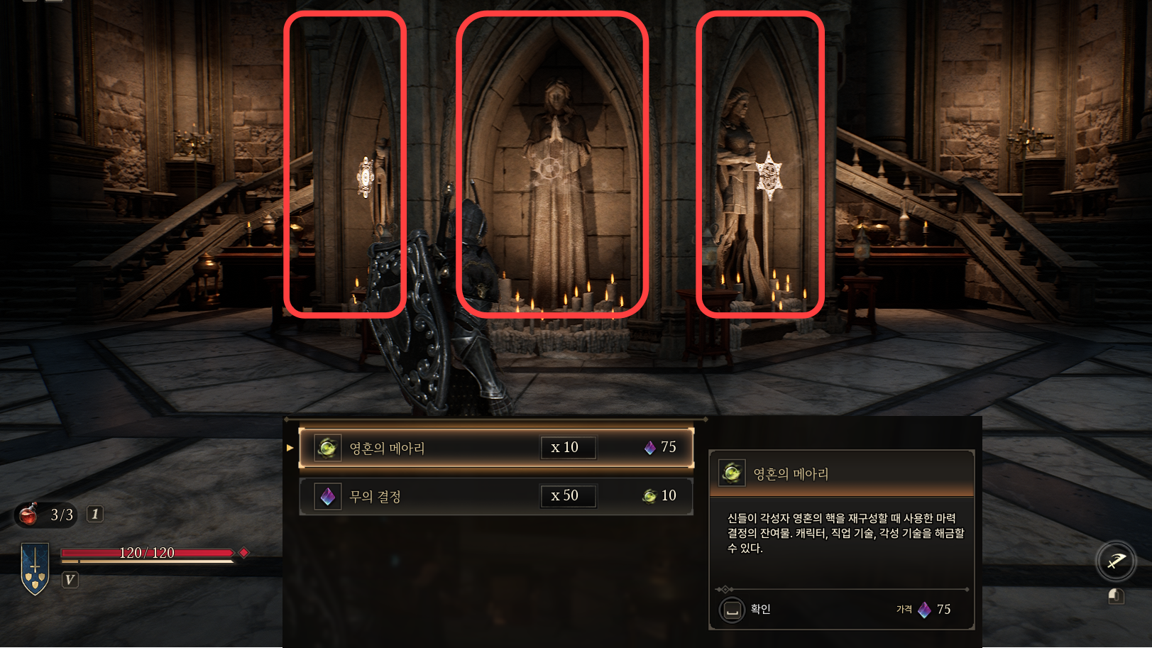 능력을 강화 시키려면 건물 안의 부조에서 강화를 시킬수 있습니다. 필요한 자원은 영혼의 메아리와 무의 결정이고 부조 마다 강화 시킬수 있는 분야가 다릅니다.