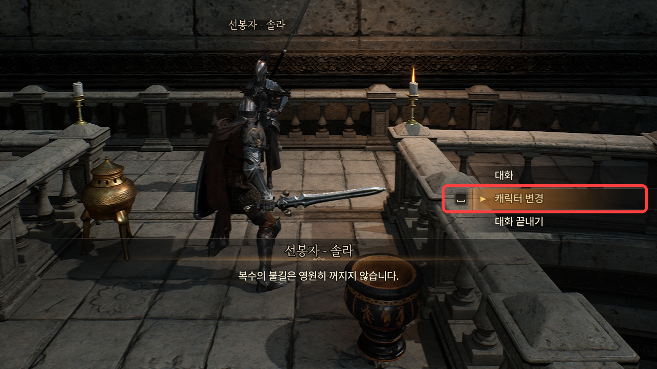 영혼의 메아리 10개를 선물해줄수 있는데 영혼의 메아리를 선물해주면 나중에 자신이 도와주겠다는 말을 합니다. 그뒤에 다시 대화하면 영혼의 메아리를 30~100개를 요구합니다. 영혼의 메아리 를 주고 다시 대화하면 캐릭터 바꾸기 메뉴가 생깁니다.
