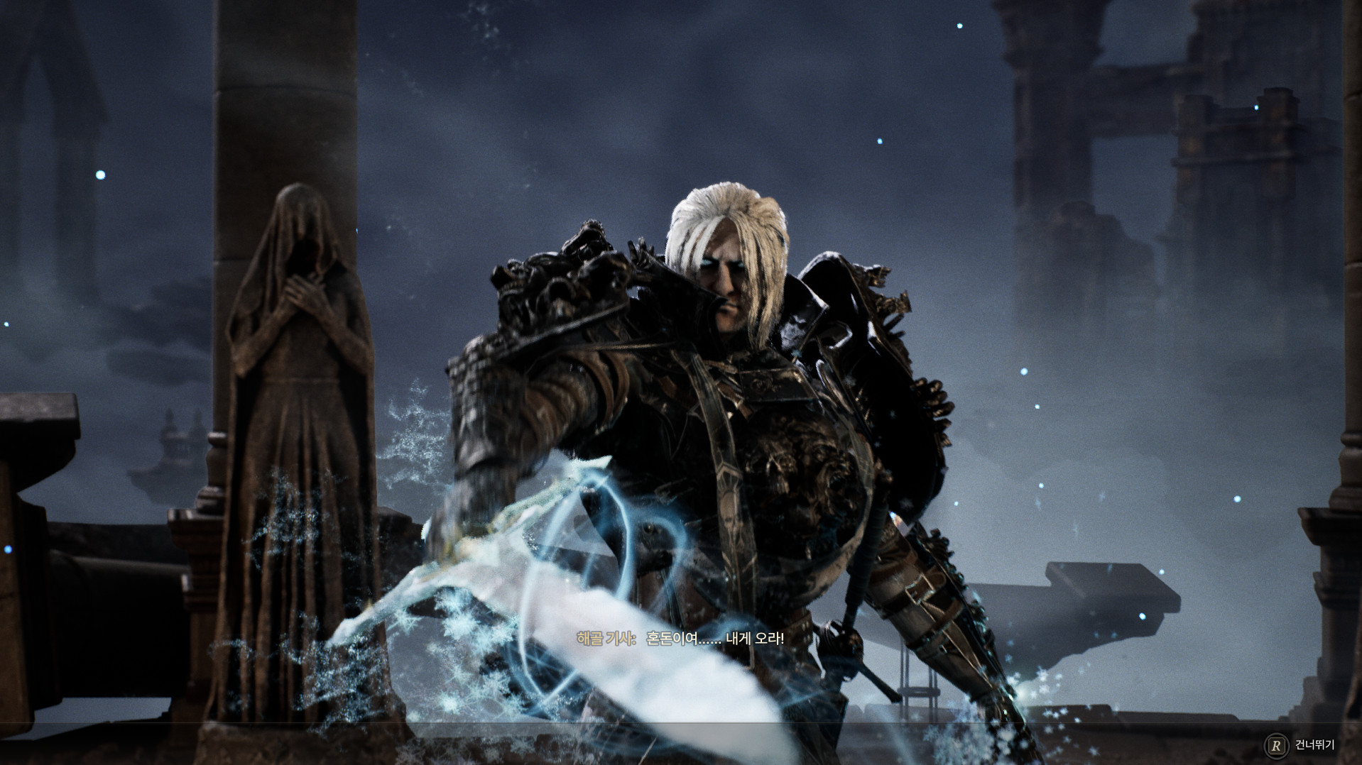 이 게임의 첫 느낌을 본다면 다들 다크 소울(또는 소울 라이크) 을 떠올릴 것입니다. 중갑으로 무장한 주인공 끝없이 반복되는 재도전, 석상과 탑 그리고 황량한 배경 등 정말 다크 소울을 떠올리게 하는 요소들이 많이 보입니다.