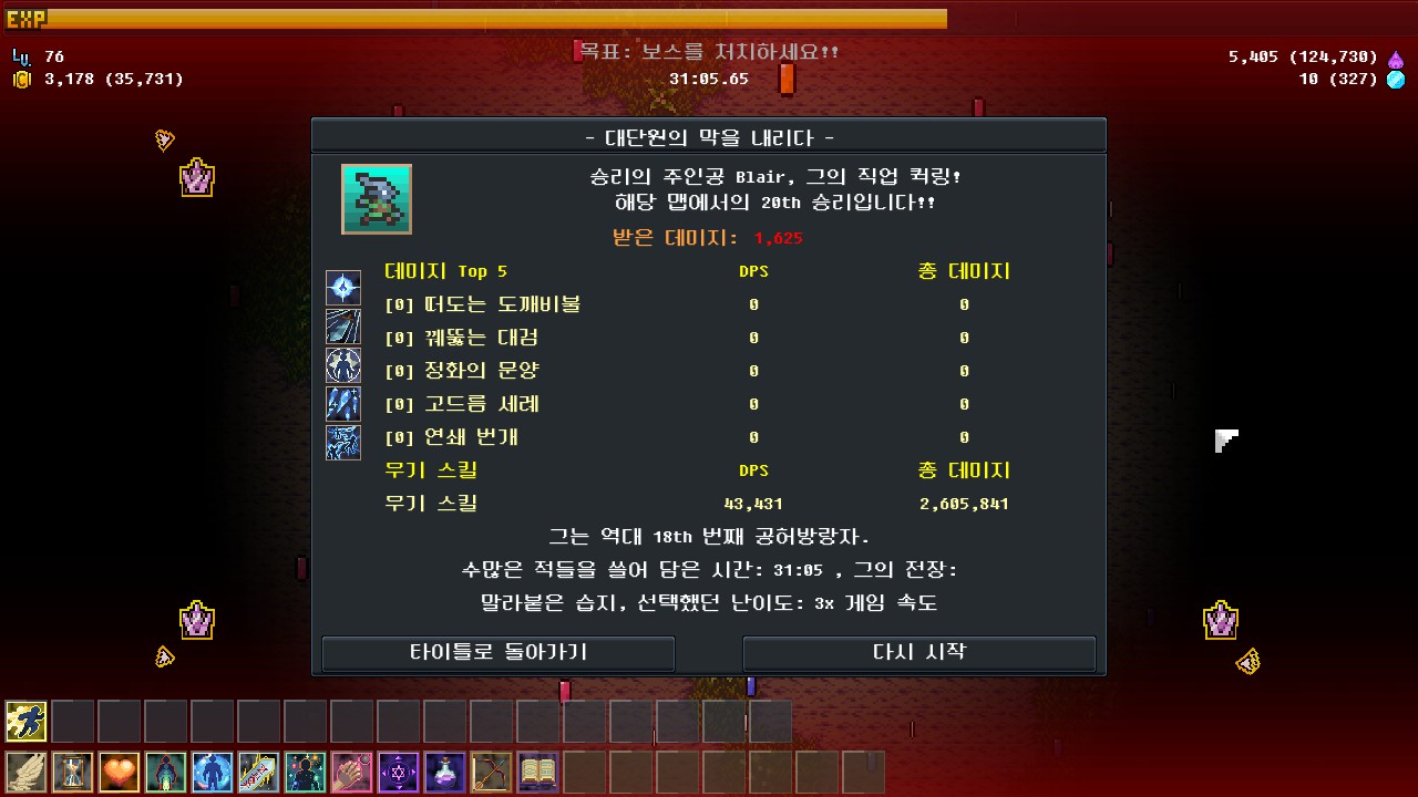 강화 거의 다 찍은 상태로 다른 플레이어의 유튜브를 참고해서 클리어했습니다.