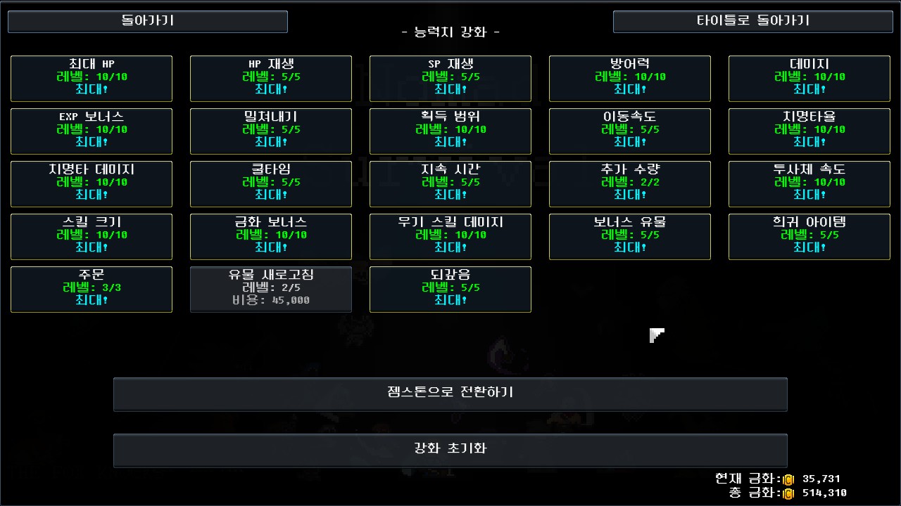 운나쁘게 보스 능력과 승천 둘이 나오면 이동속도만 증가시키는 첫 번째 승천에 찍는게 좋습니다.