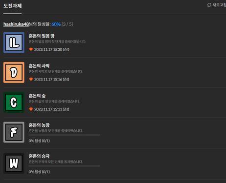 오! 도전과제 완료 날짜까지 표시되는 군요! 스토브 인디 열일했네요 ㅋㅋㅋㅋ