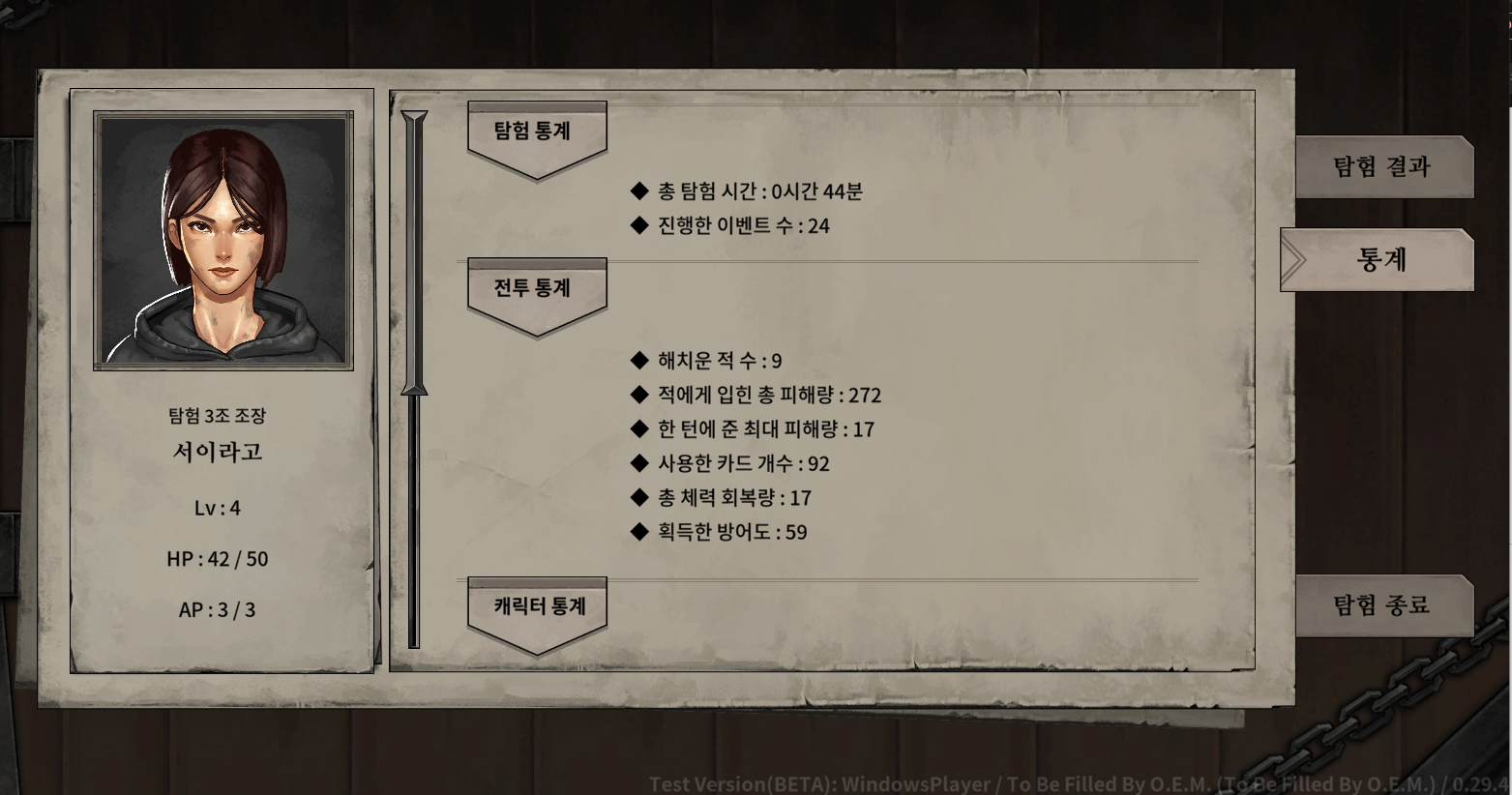 62개의 탐험 결과를 얻어야 하는데, 선택지가 너무 중구난방으로 등장하는 느낌? 선택지가 너무 많아서 A 에서 B로 이야기가 넘어가는 흐름이 끊디는 경우가 있다. 근데 이건 뭐 60초 핵전쟁 마냥 그런 류의 게임을 좋아하는 유저들에게는 반감이 없을 것 같다.