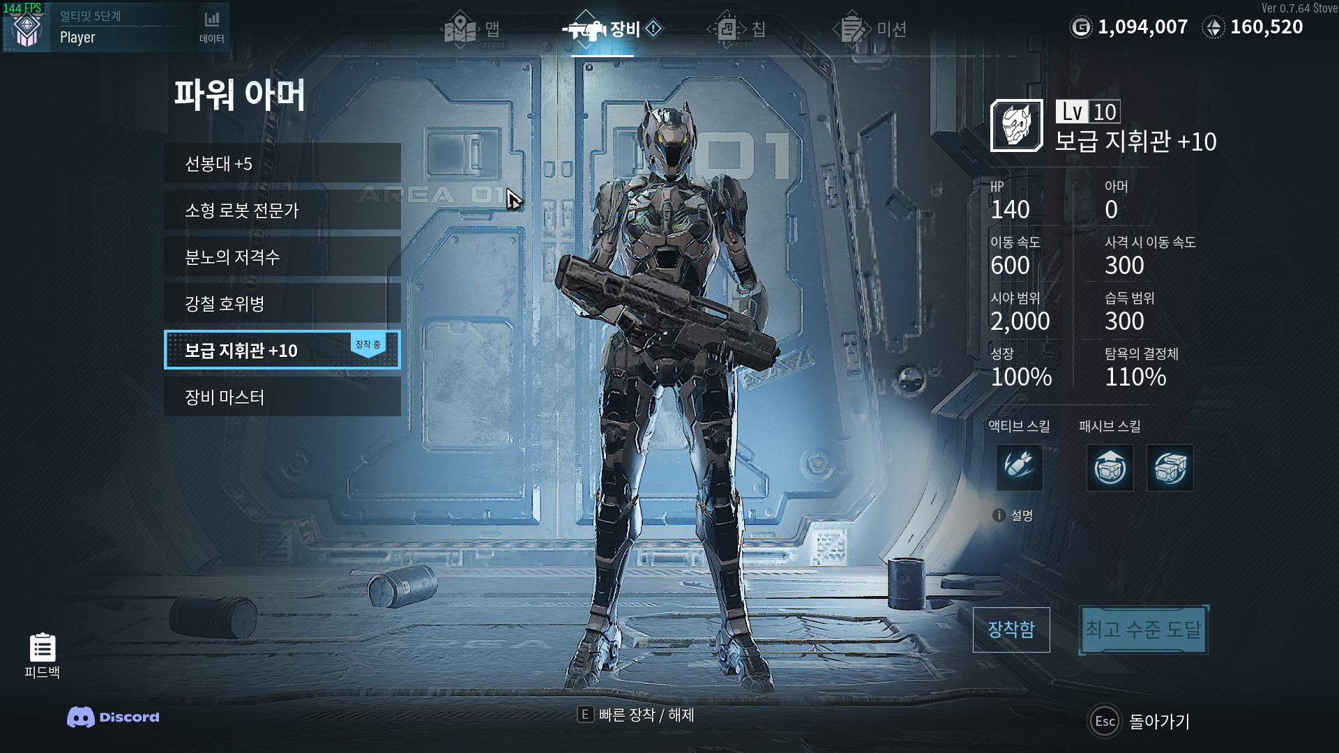 각 파워아머들은 고유의 액티브 스킬을 가지고 있고 또 +5, +10 업그레이드 시 패시브 스킬이 하나씩 열립니다.
