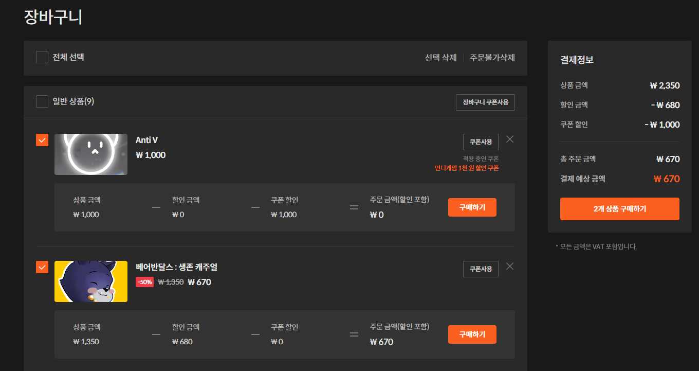 아래는 기존 1000원에 구매 가능한 게임