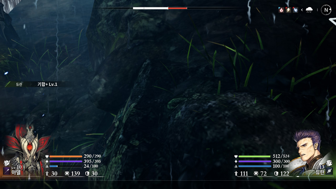 더군다나 타격판정이 진짜 욕이 나올 정도로 거지 같습니다. 눈앞에서 정확하게 검을 휘두른 잔상이 몹을 관통했는데, 타격 판정이 안되고 (미스도 나나??), 적은 원거리 공격까지 해오는 데, 당연히 선제 타격 받은 것으로 처리됩니다. 그리고 이렇게 선제 타격 받으면 아군 전원이 20% 가량의 피해를 입고 시작하는데, 이게 손실이 너무 큽니다.