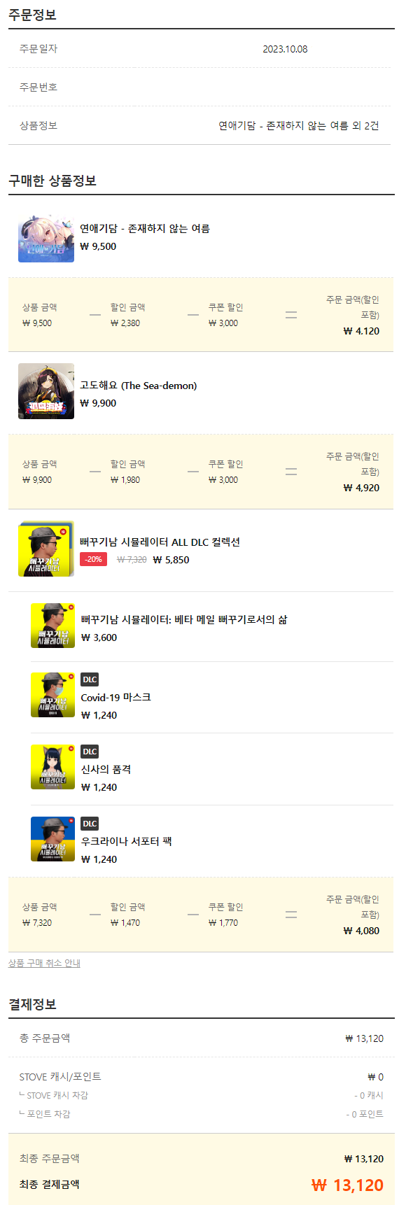 이번달 게임 구매에 큰 타격이 왔네요