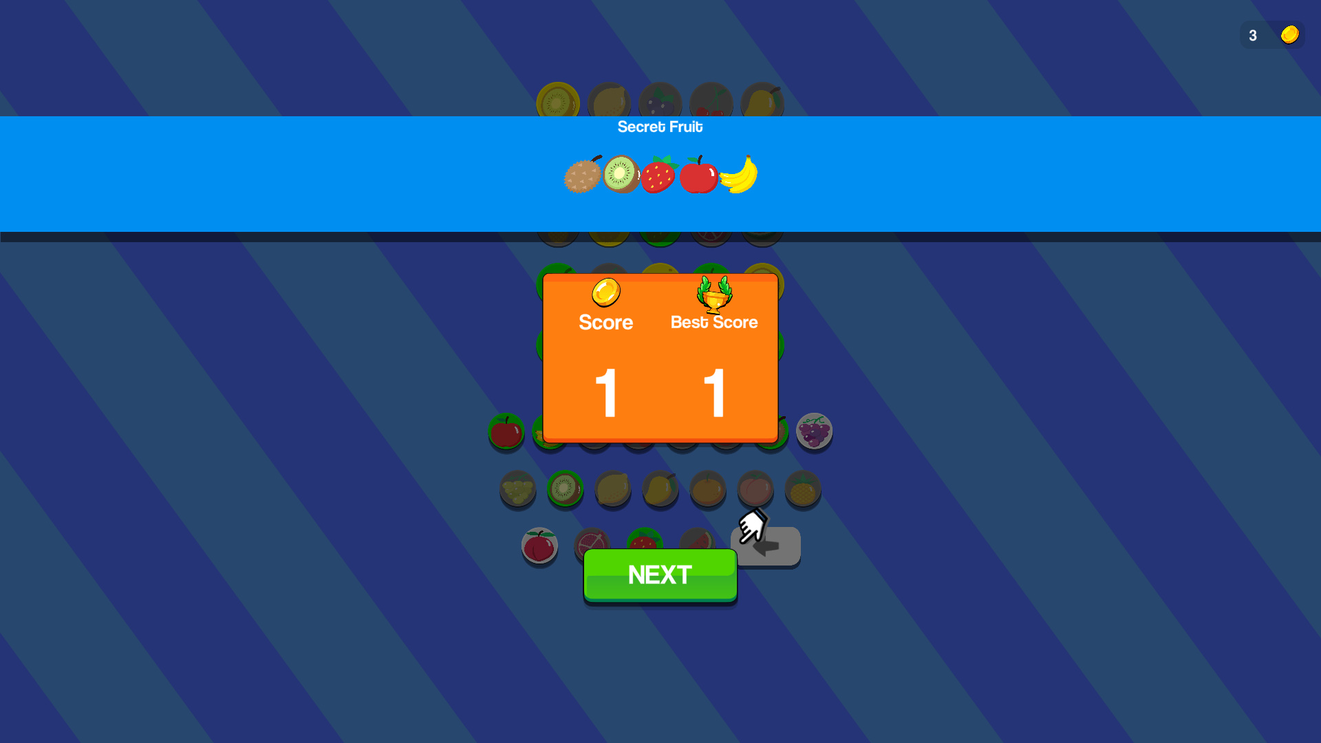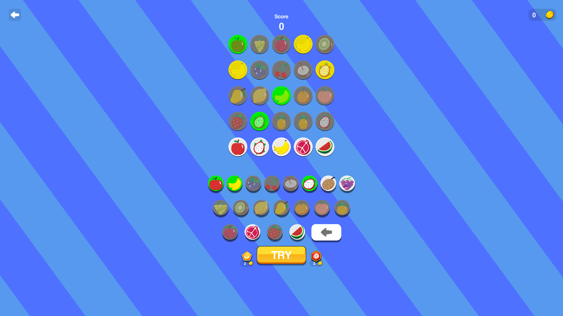 게임은 과일 맞추기가 맞습니다. 게임 방법은 아래쪽에 있는 과일을 눌러서
