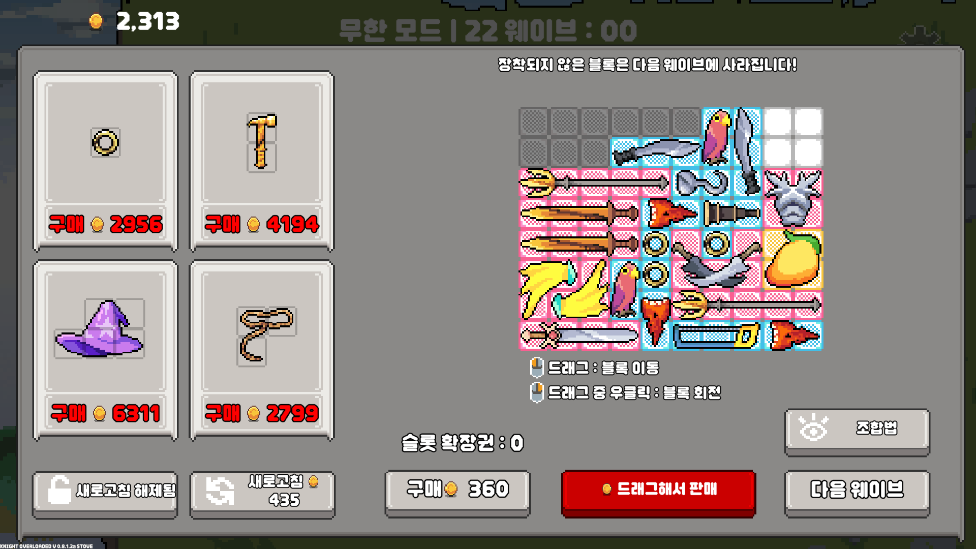 스테이지 클리어후 무한모드  웨이브 클리어 할수록 템가격이 너무 많이오르네요.되파는가격도 비싸졌지만