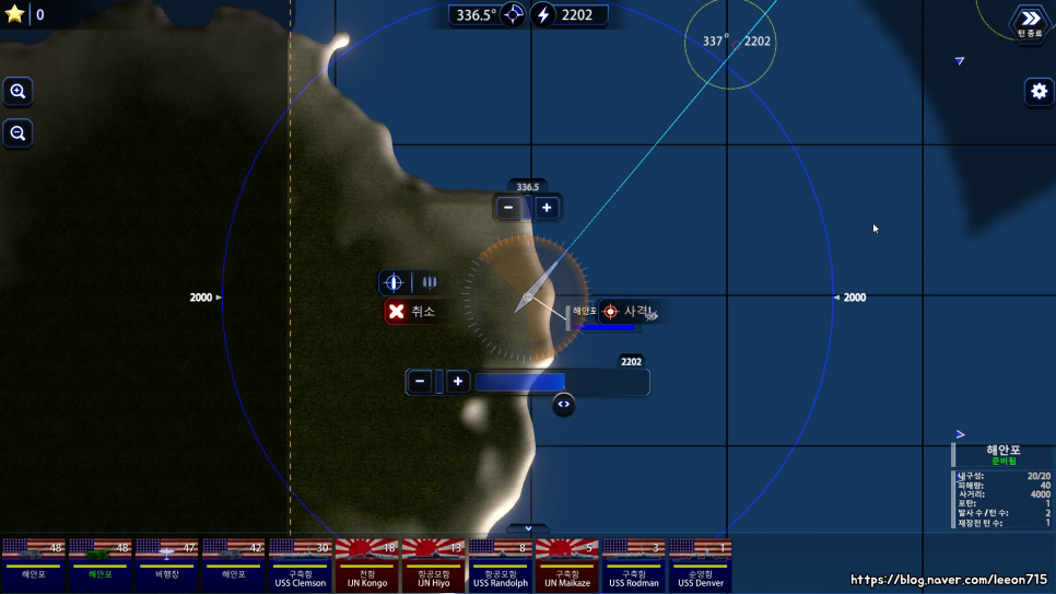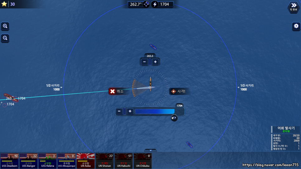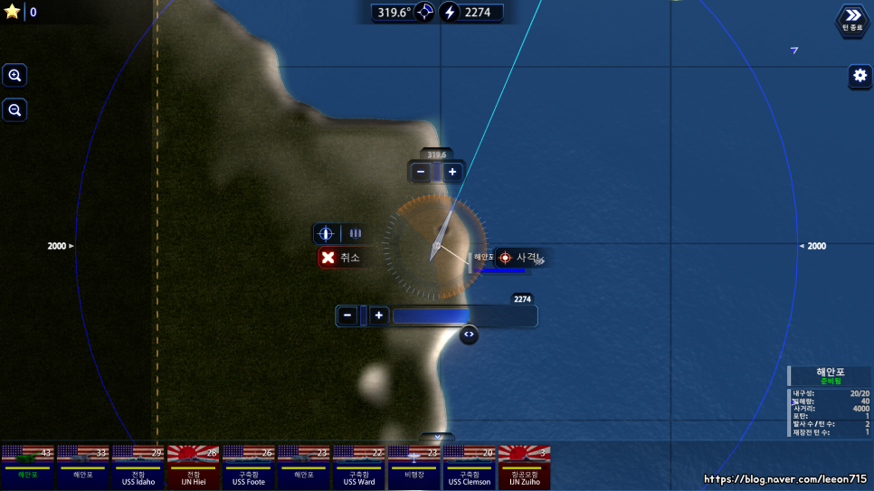 특수하게 어뢰는 정확한 좌표 없이도 가능하긴 합니다. 어뢰는 직선으로 나아가기 때문에 최소 거리 이상만 도달하면 정확한 좌표가 아니더라도 적 함선을 명중할 수 있도록 구현했죠. 대신에 섬같은 지형은 통과할 수 없어 그 자리에서 폭발하도록 되어 있습니다.