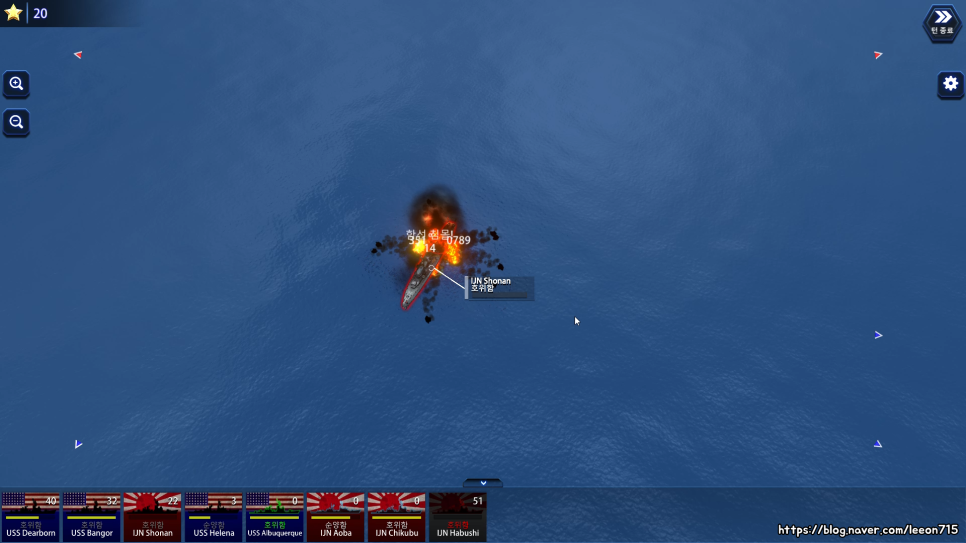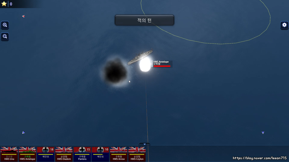 게임 플레이는 턴제로 정적인 방식이지만 지루할 틈 없이 서로 해전에서 공방을 주고받는 재미가 있습니다. 포탄이 적중되거나 아슬아슬하게 피해갈 때 그런 연출을 보는 짜릿함이 게임의 활기를 더해주었습니다. 자신과 적 함선의 거리 및 포탑의 사거리까지 계산하는지라 전투 시간은 긴 편. 게임 속도는 1배속부터 3배속까지 조절 가능합니다.