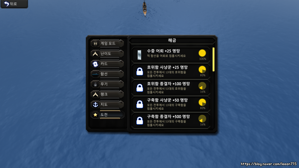 업적 시스템도 있어서 전투 중간마다 성취감을 느끼게 하는 건 덤이었습니다. 레벨링 시스템을 도입해 일정 레벨마다 캠페인이 해금되도록 해두었는데 이것도 허들이 크진 않은 편입니다.