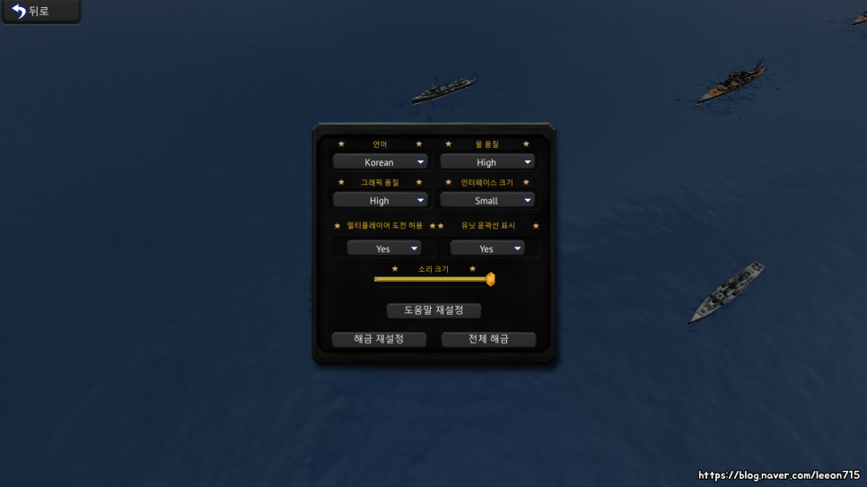 게임 내에는 다양한 함선들이 모델링 되어 있고 지형도 섬 고도나 바다 물결 등 기본적인 것은 전부 구현되어 있습니다.