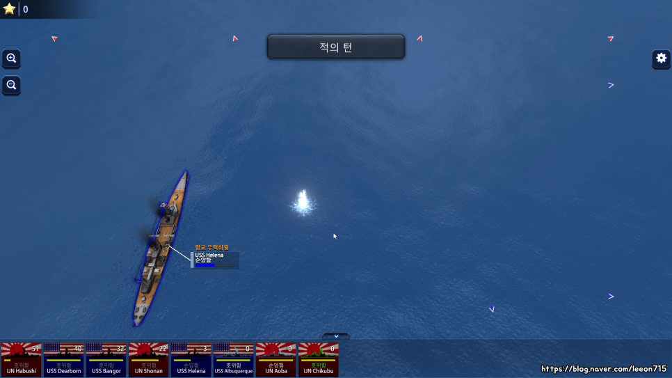 함선마다 일정 사거리까지 보여주긴 하지만 기본적으로는 예측해서 쏴야 합니다. 이전에 쐈던 포탄들의 거리를 고려하며 점점 영점을 잡아나가는 느낌입니다. 포탑들은 전방, 측면, 후방에 각각 배치되어 있고 포탑 종류마다 사거리, 회전 반경, 피해량이 다릅니다. 앞서 이 포탑들은 조선소에서 편집해서 배치가 가능하다고 하였는데 어떻게 커스텀했느냐에 따라 전투 스타일이 완전히 달라지는 거죠.